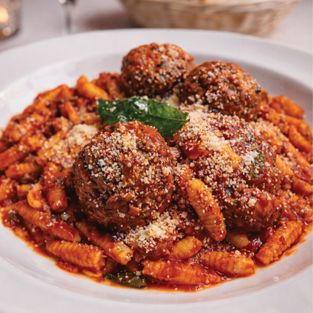 Fat Eggplant, Moz-Prov Cheese blend, Signature Marinara, spaghetti