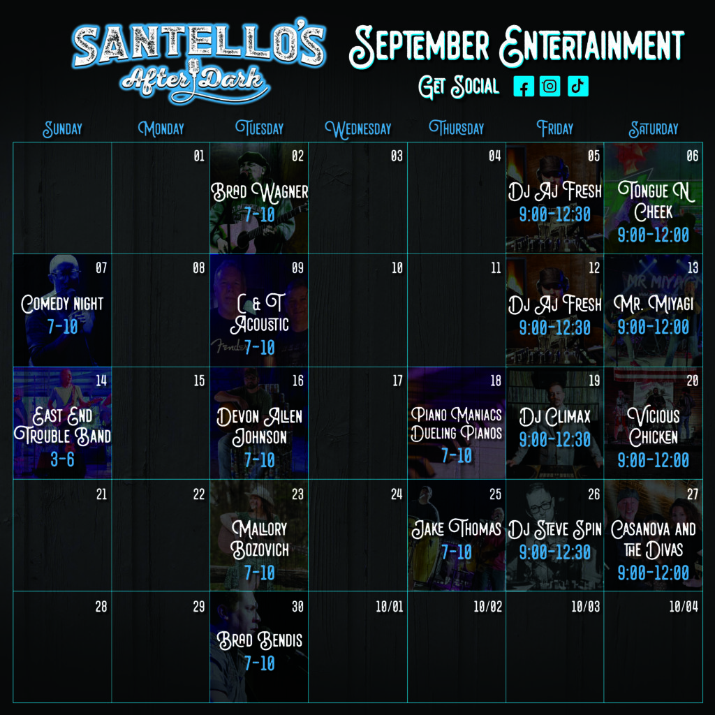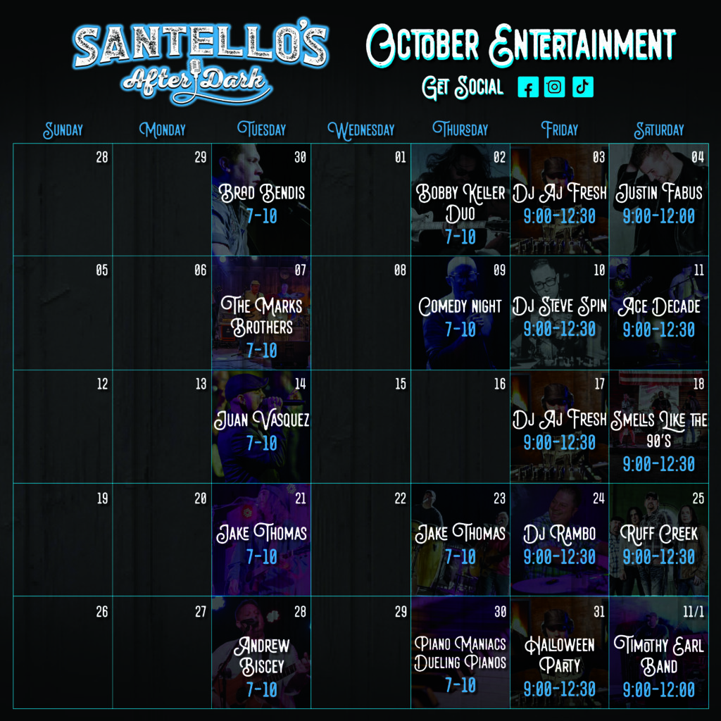 Be the first to know what’s happening at Santello’s. Join our mailing list for upcoming events, ticket drops, and exclusive insider perks.